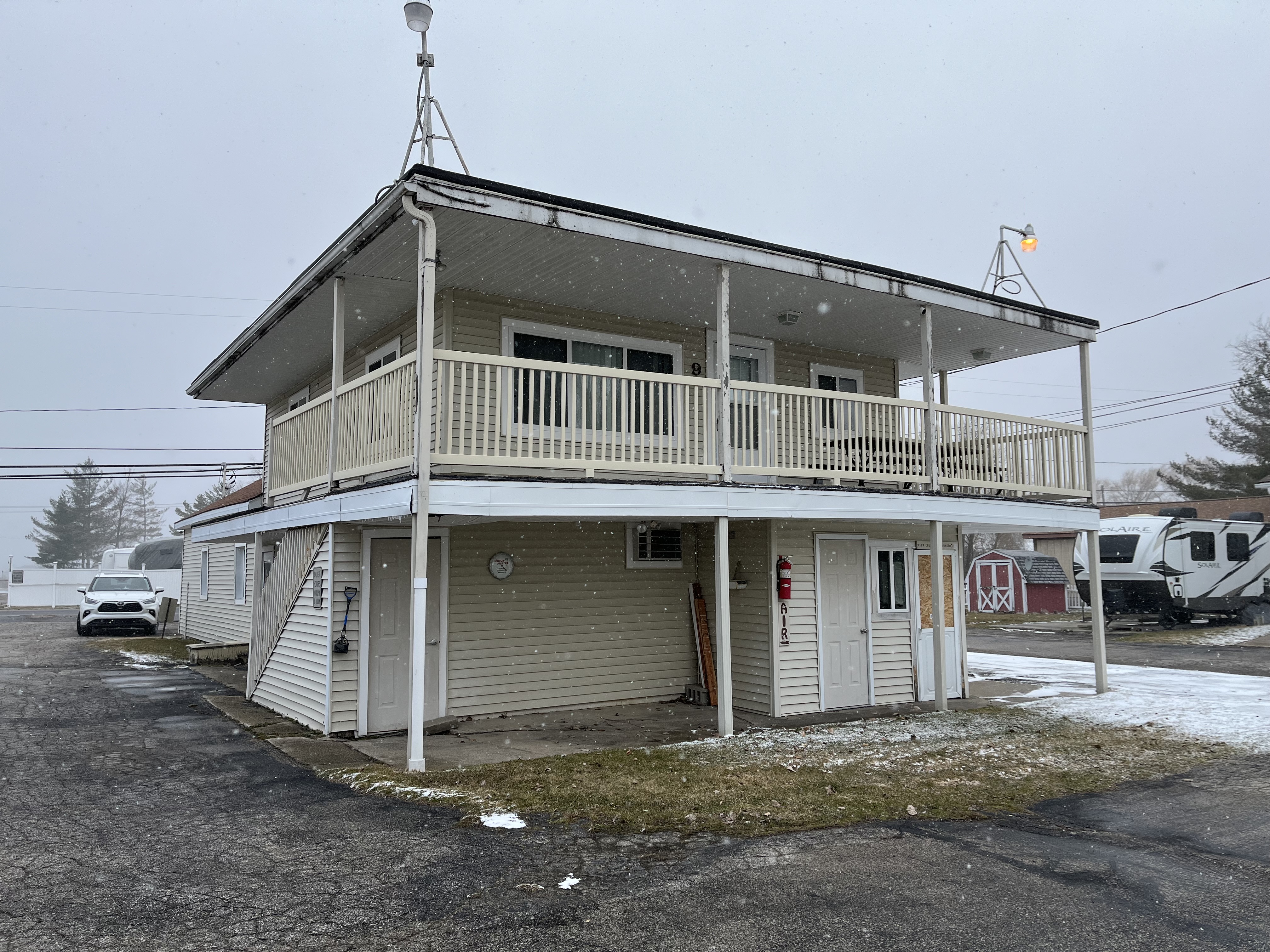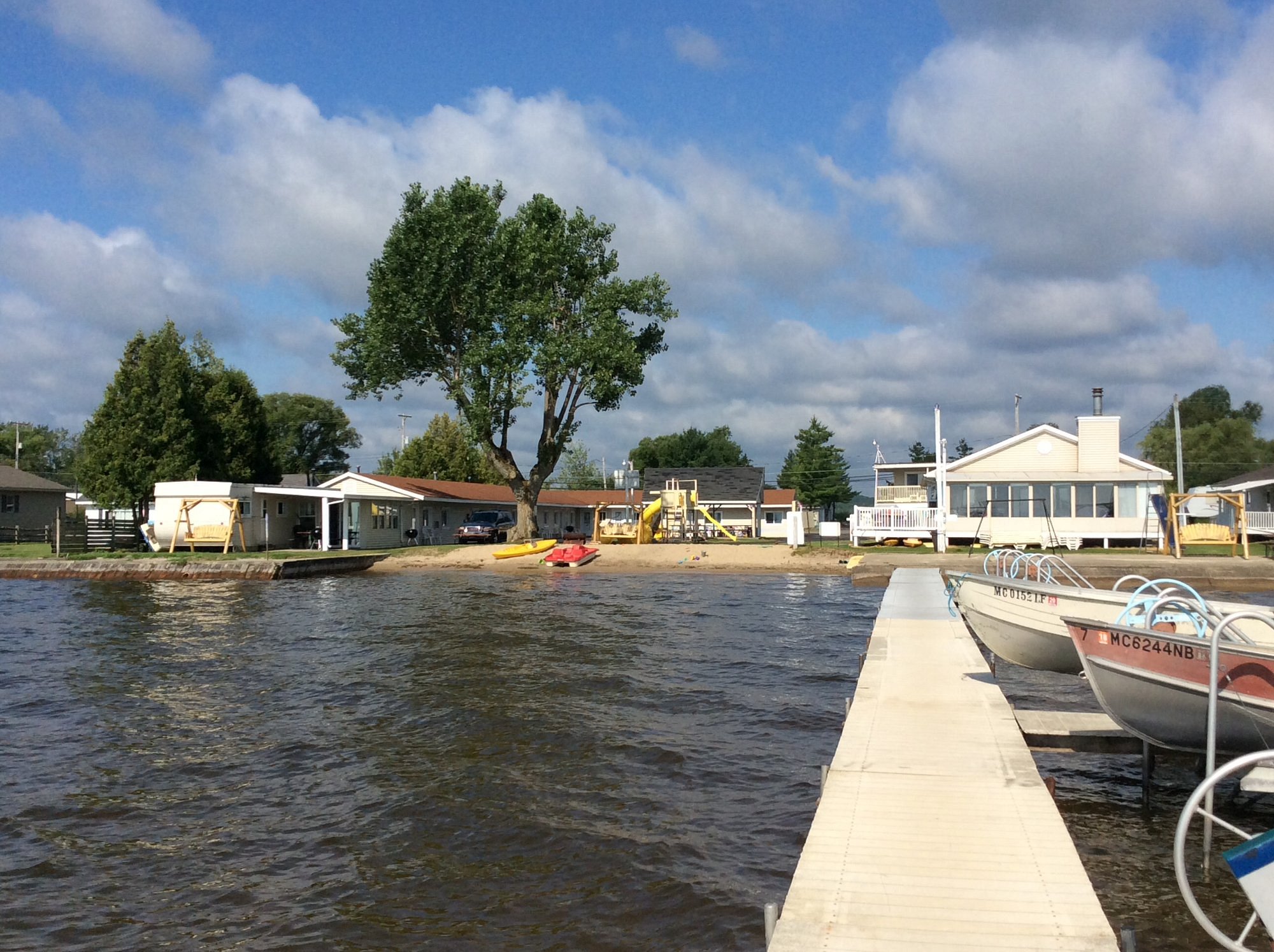 Includes 200 feet of direct waterfrontage, with breakwalls and beach. Five lots. Spacious 3 Bedroom, 2 bath ranch home, 11 cabin rentals, 18 campsites, playground, pavilion, bath house, approx. 300 feet extensive docking, fish cleaning area, game room and so much more. Great opportunity for resident owner/operator. Located right off Highway 127 and 55. Popular lake front area in Mid-lower Michigan.